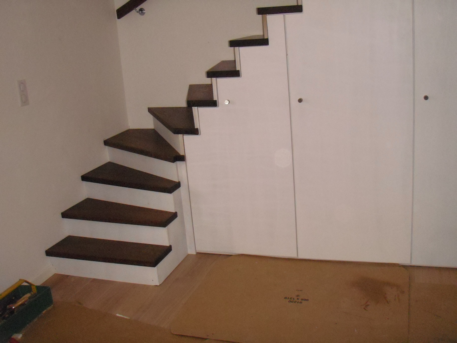 - Habillage d’escalier béton : marches et contre marches en bois bois, marches en bois massif et contre marches en contreplaqué peint …….